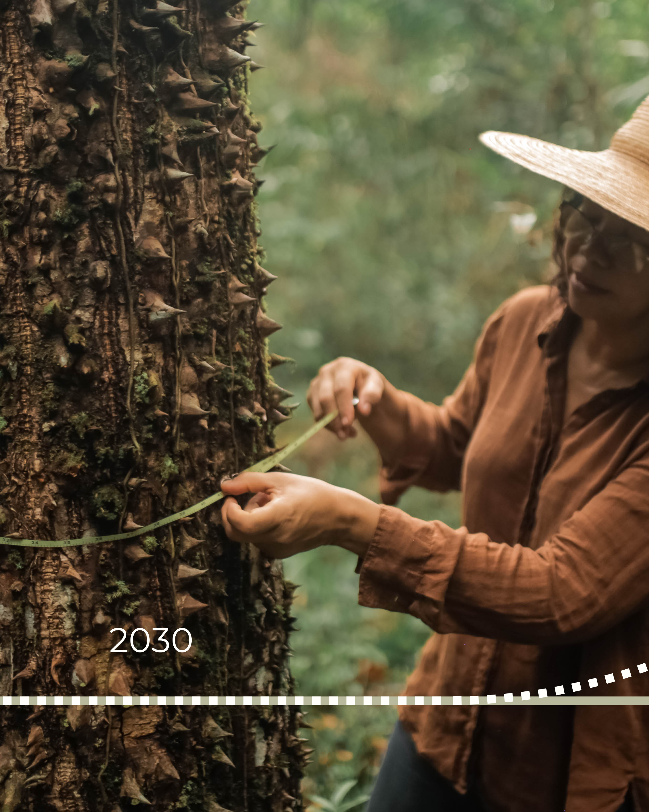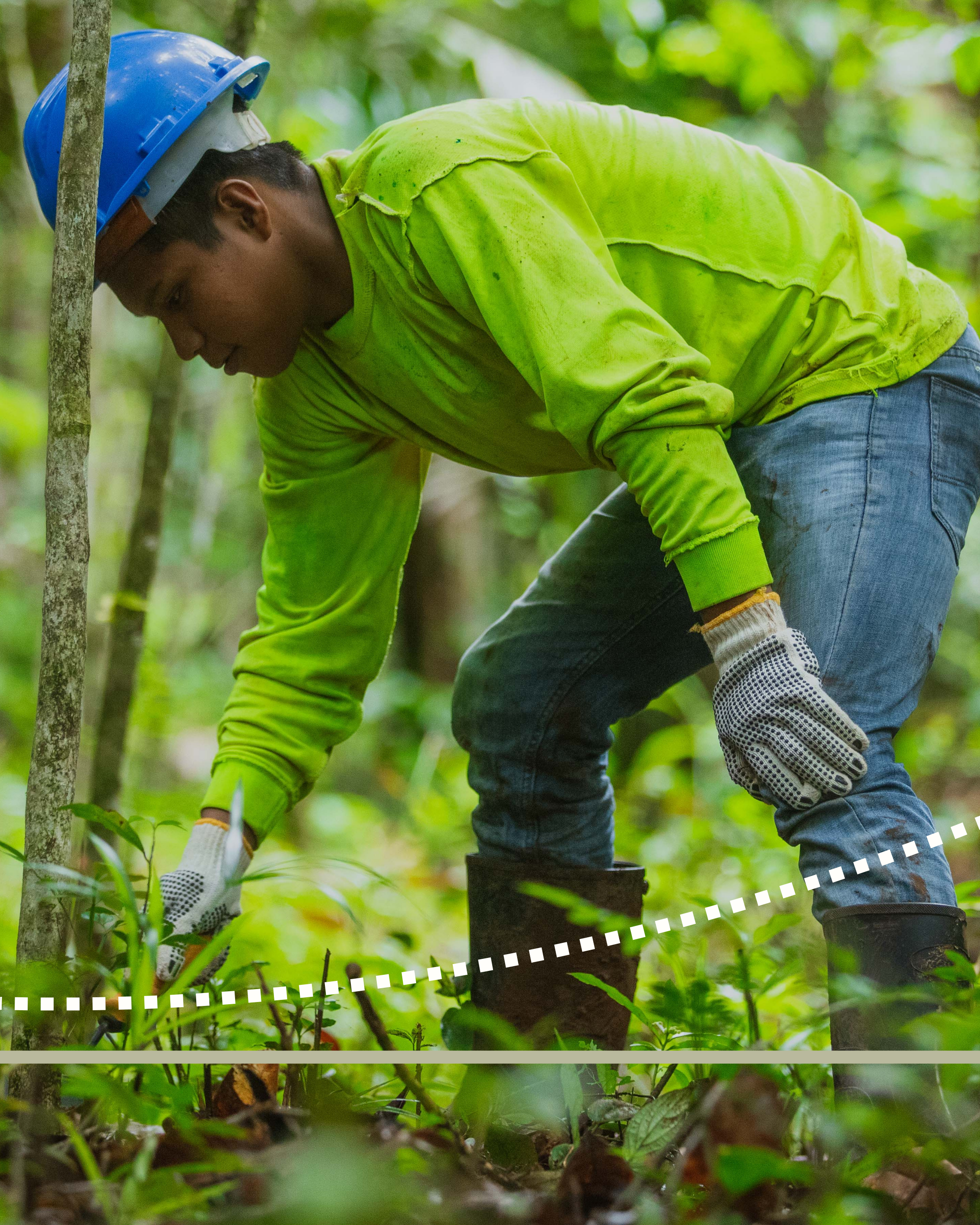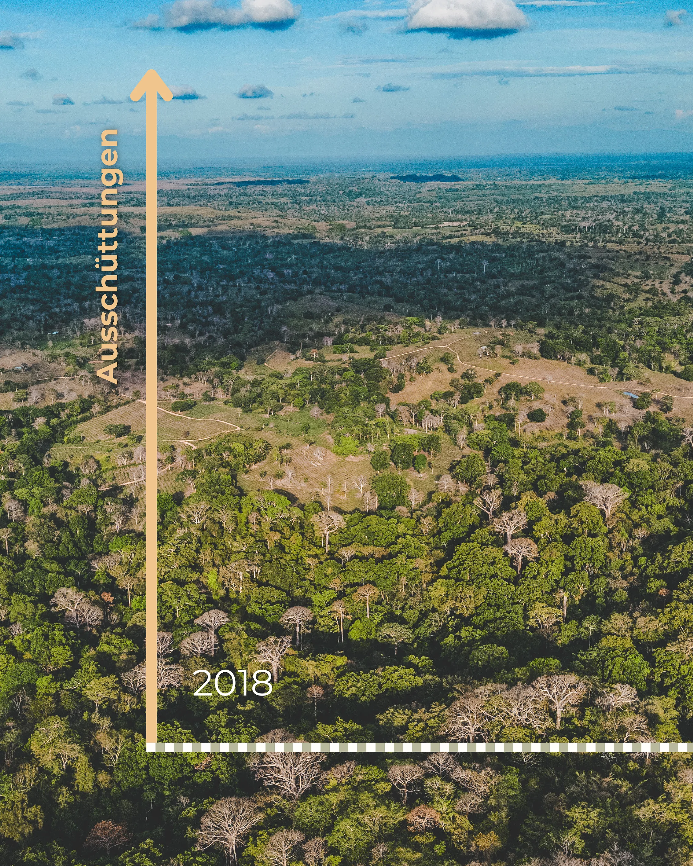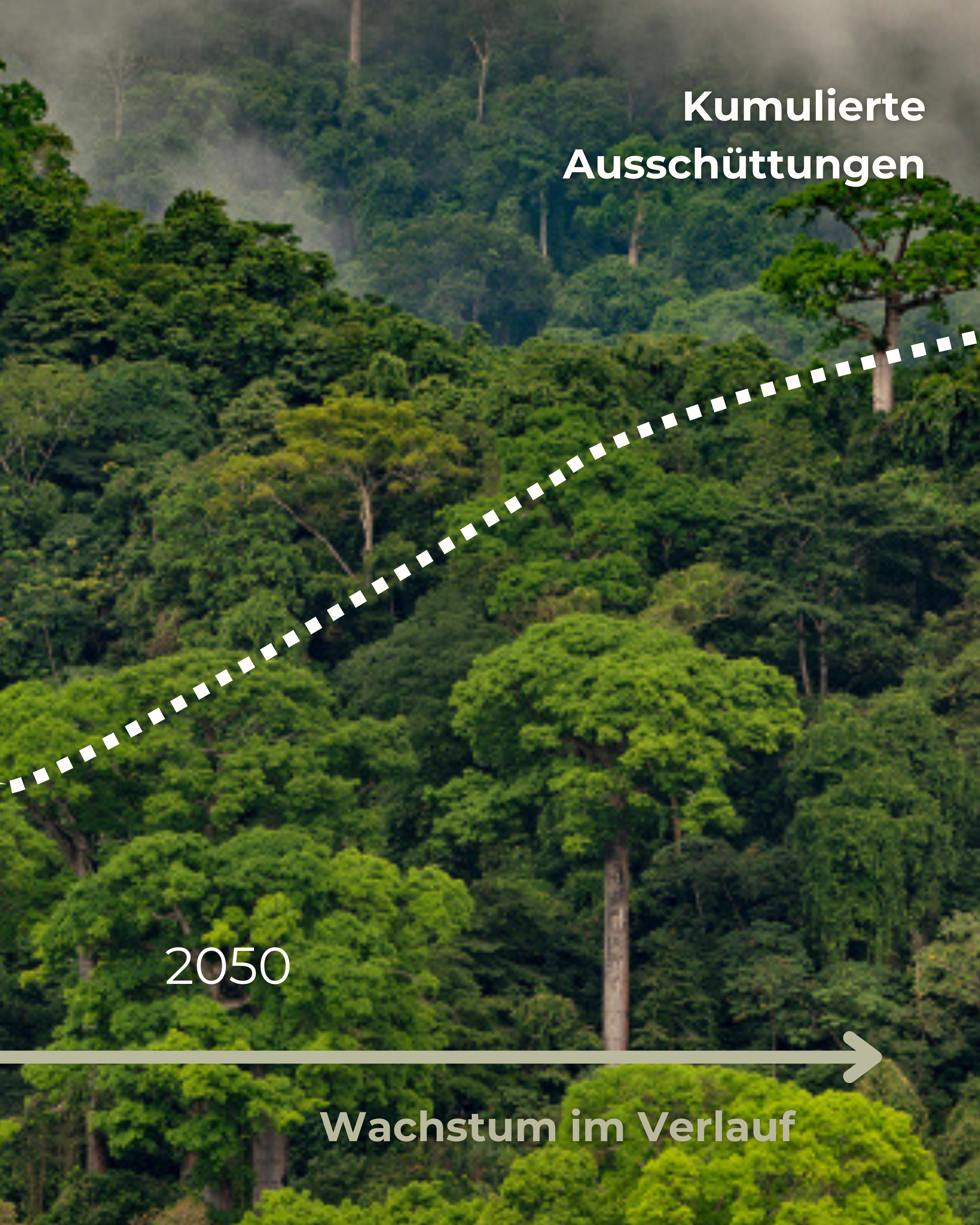 Dazu forsten wir degradierte Flächen mit vielfältigen Edelhölzern auf. Diese werden selektiv geerntet und nachgepflanzt – so entsteht ein dauerhaft stabiles Ökosystem, das CO₂ speichert, Biodiversität fördert und langfristige Perspektiven schafft.